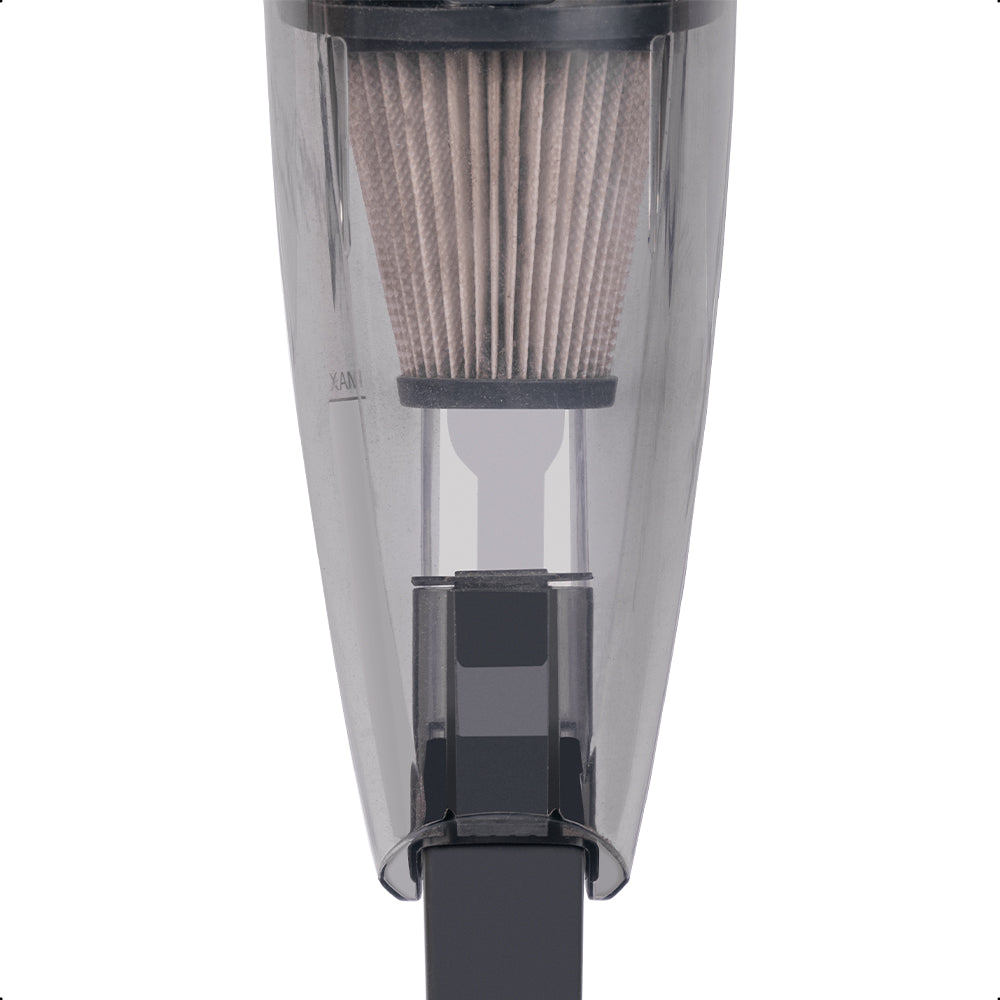 Su depósito de polvo de 0,9 litros y desmontaje sencillo aseguran un vaciado rápido y limpieza eficiente. Equipada con un filtro de HEPA + esponja, no solo limpia, sino que también mejora la calidad del aire en tu hogar. Compacta y fácil de almacenar, esta aspiradora hace que la limpieza sea rápida y sin complicaciones.