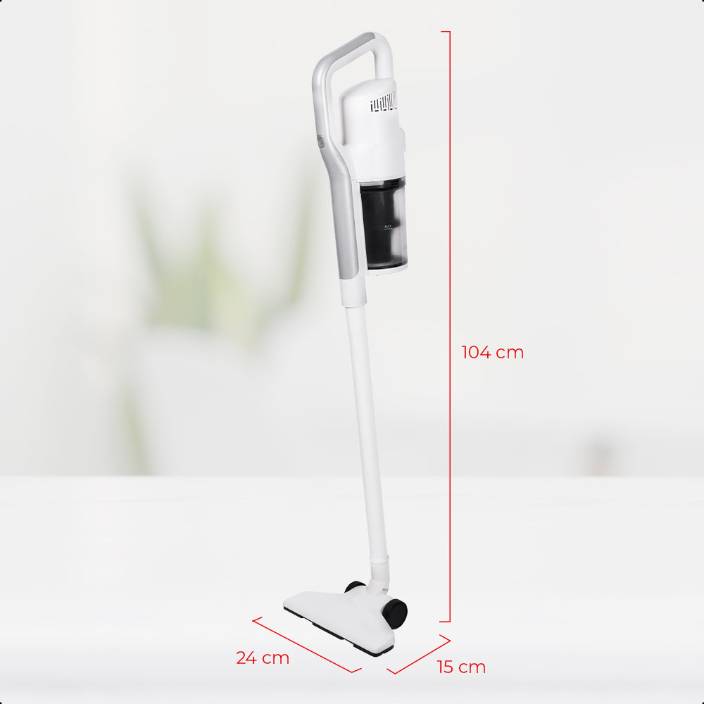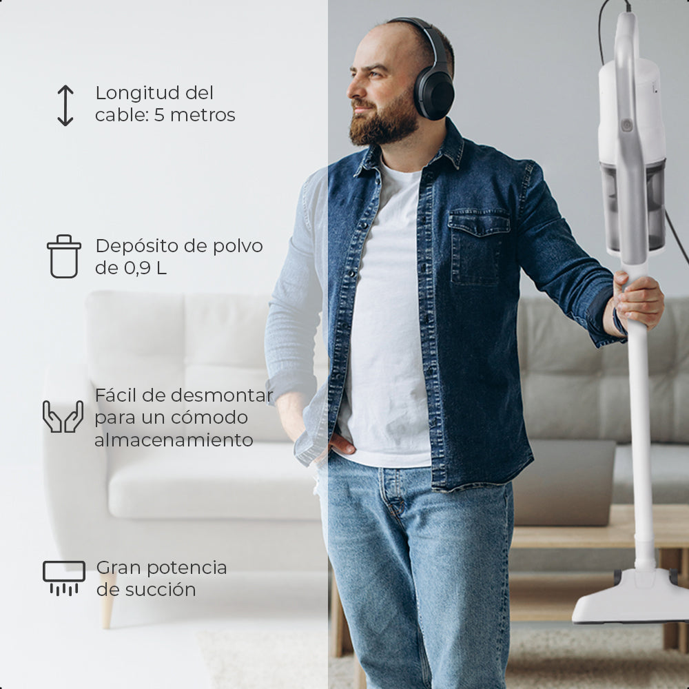 Experimenta la eficacia en la limpieza diaria con nuestra aspiradora ligera y silenciosa. Diseñada para un control fácil y rápido, esta solución práctica ofrece una potente succión en cualquier superficie. Con su depósito de polvo de 0,9 litros y un cable de alimentación de 5 metros, facilita la tarea sin interrupciones constantes.