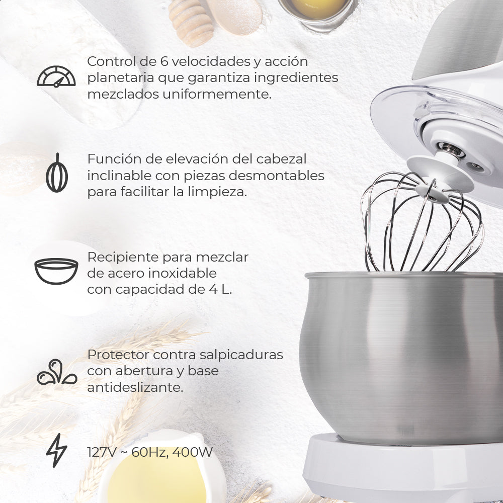 - Acción planetaria: Garantiza ingredientes mezclados uniformemente