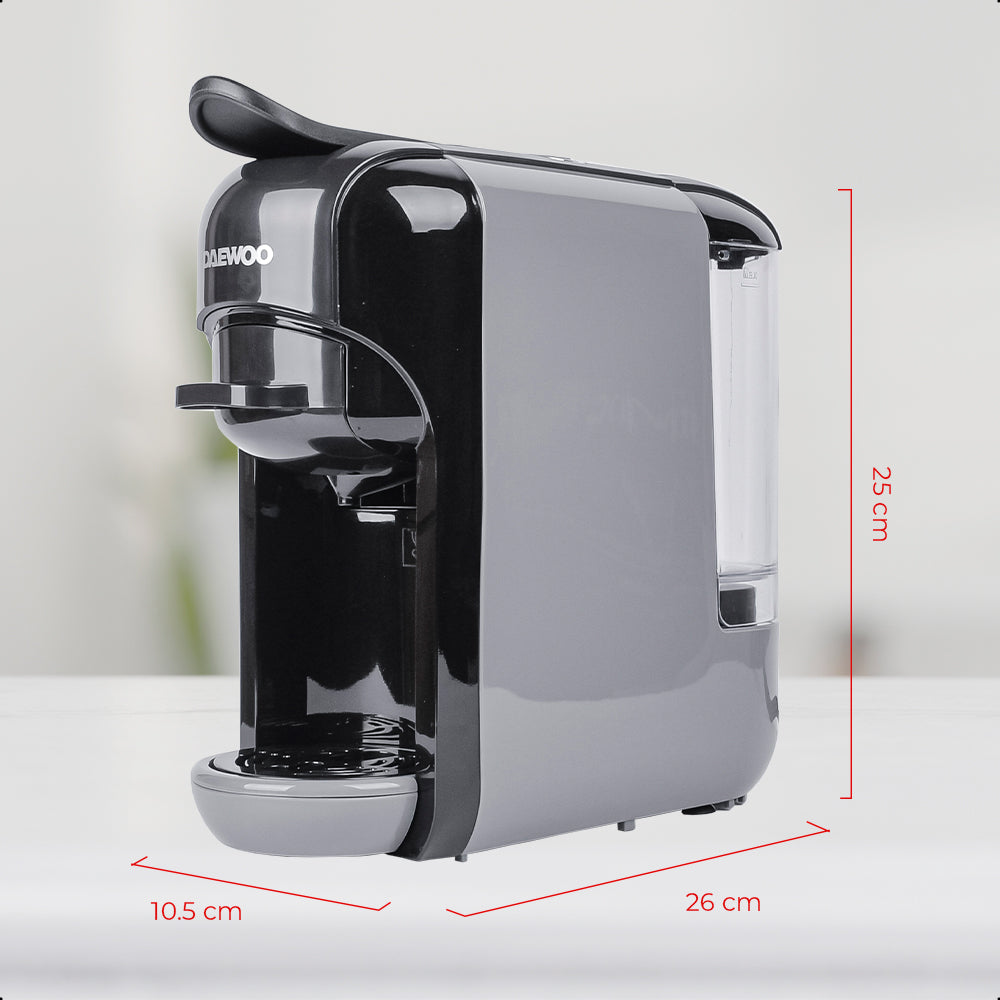 Experimenta el arte del café con nuestra cafetera versátil y elegante. Compatible con Nespresso®, Dolce Gusto®, café molido y pods de café de 44 mm de ESE, esta joya culinaria se adapta a tus preferencias.