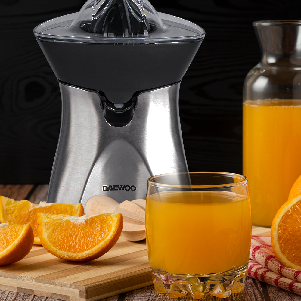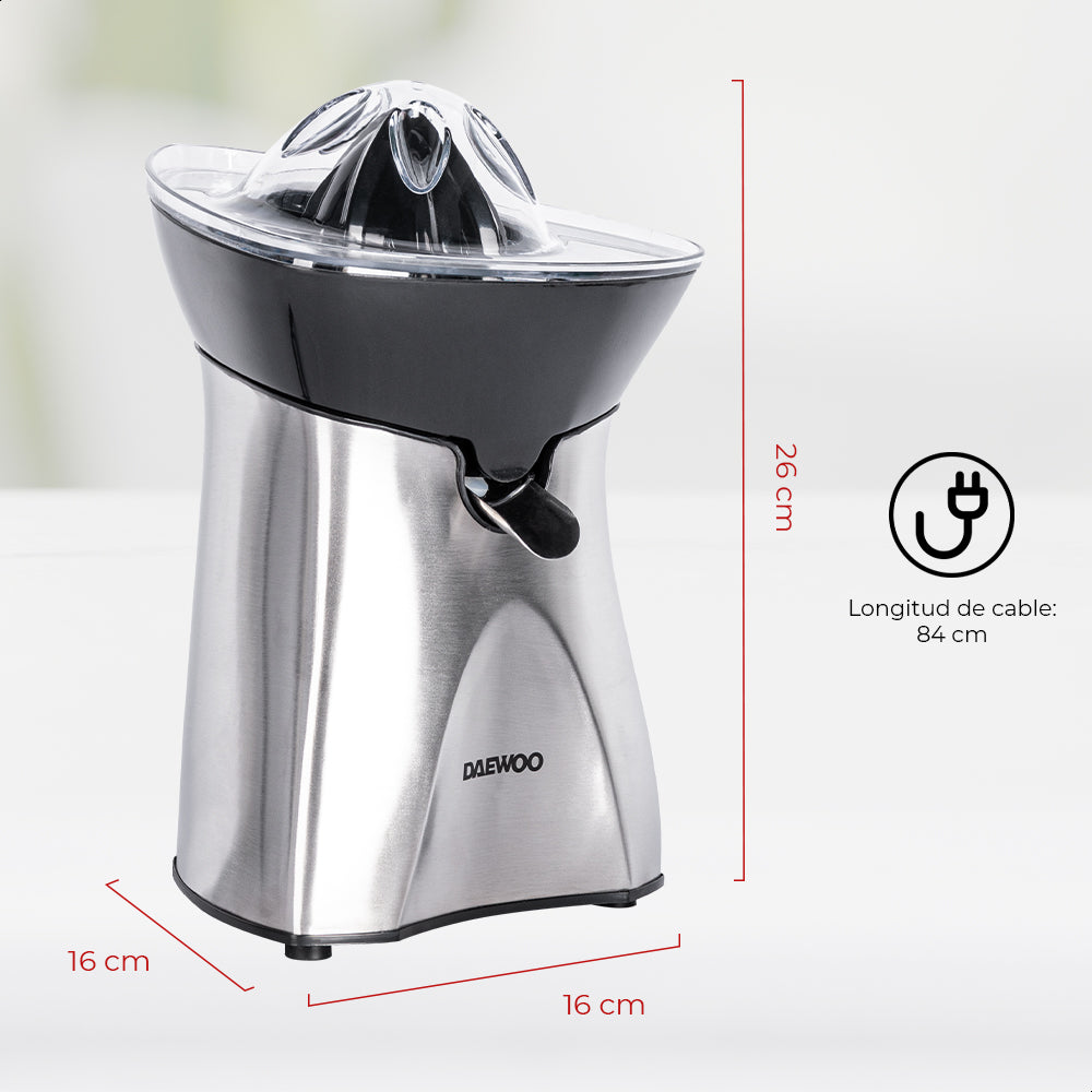 Su cubierta protectora de polvo, su carcasa y boquilla de jugo de acero inoxidable le dan un aspecto elegante y moderno que se adapta a cualquier cocina. También es fácil de limpiar gracias a sus partes desmontables y su base antideslizante la hace estable y segura durante su uso. Con una potencia de 60W y una alimentación eléctrica de 127V ~ 60Hz, podrás disfrutar de jugo fresco en cualquier momento del día.