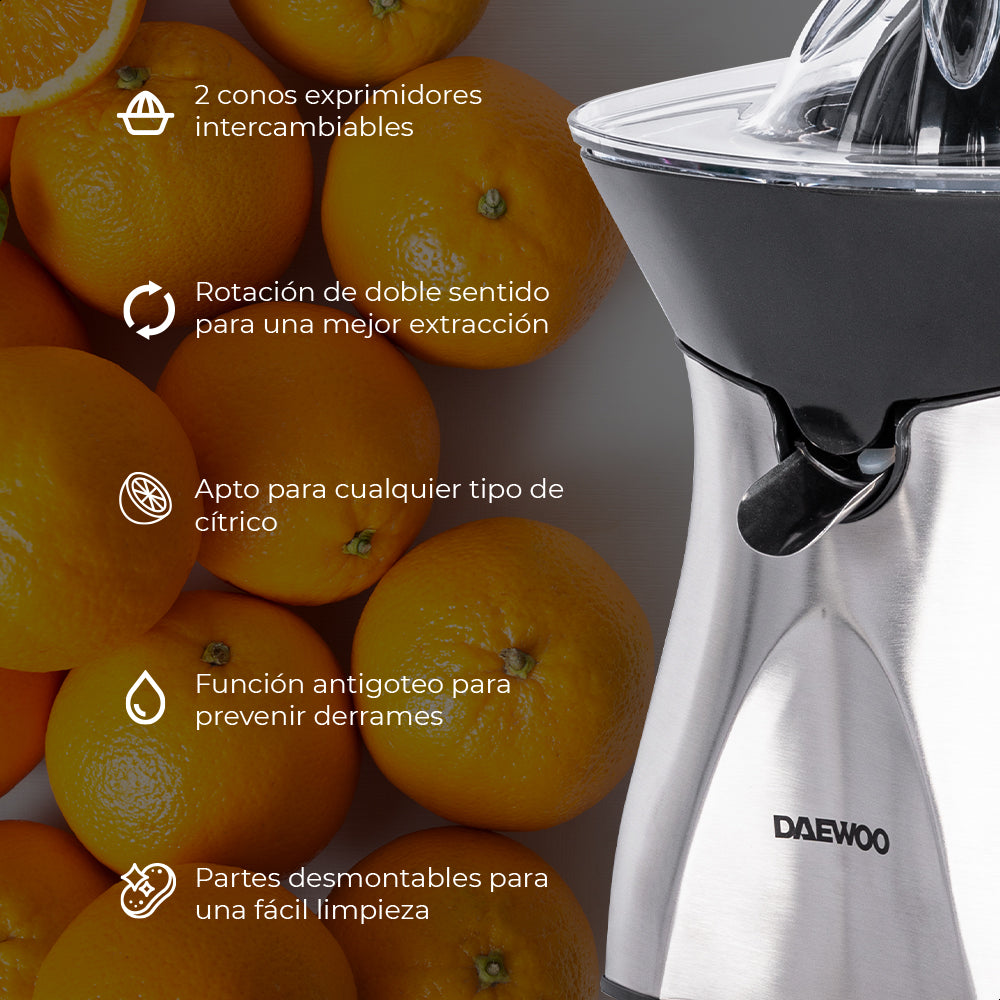 Si eres amante de los jugos frescos y saludables, nuestro exprimidor es la herramienta perfecta para ti. Con sus dos conos exprimidores intercambiables y rotación en doble sentido, podrás extraer hasta la última gota de jugo de cualquier tipo de cítrico en cuestión de segundos. Además, cuenta con una función antigoteo que previene