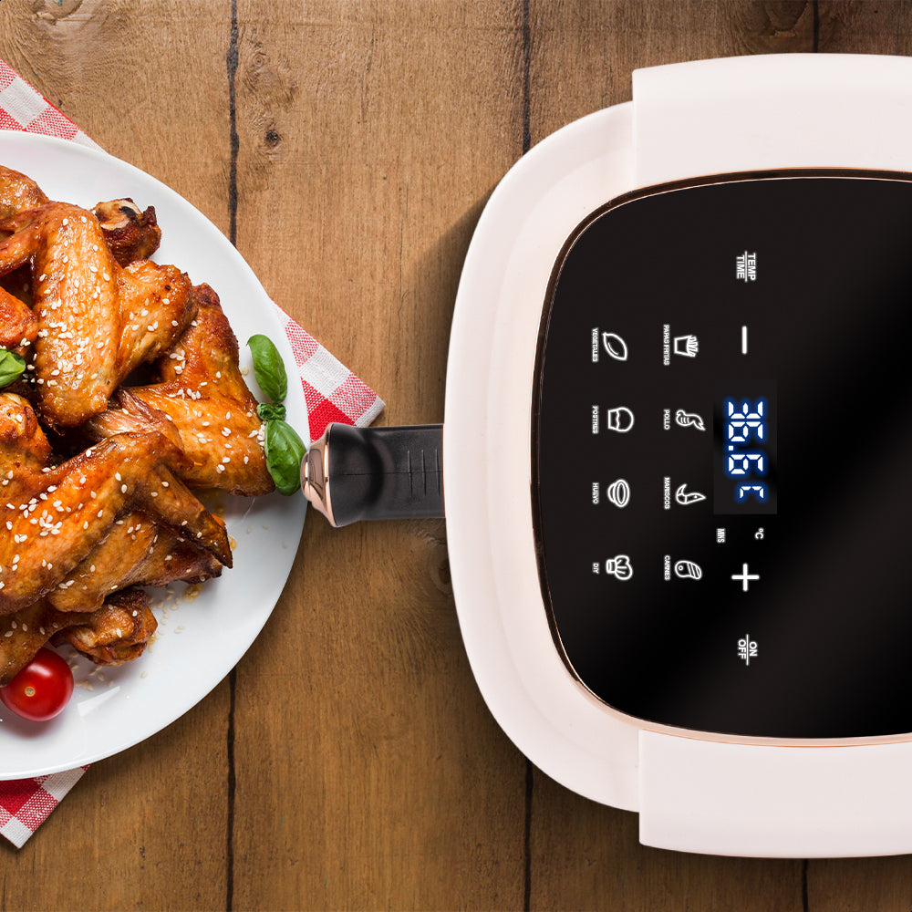 - 8 Programas preestablecidos (papas a la francesa, alitas, camarones, carne, camote, pastel, parta de huevo, DIY)