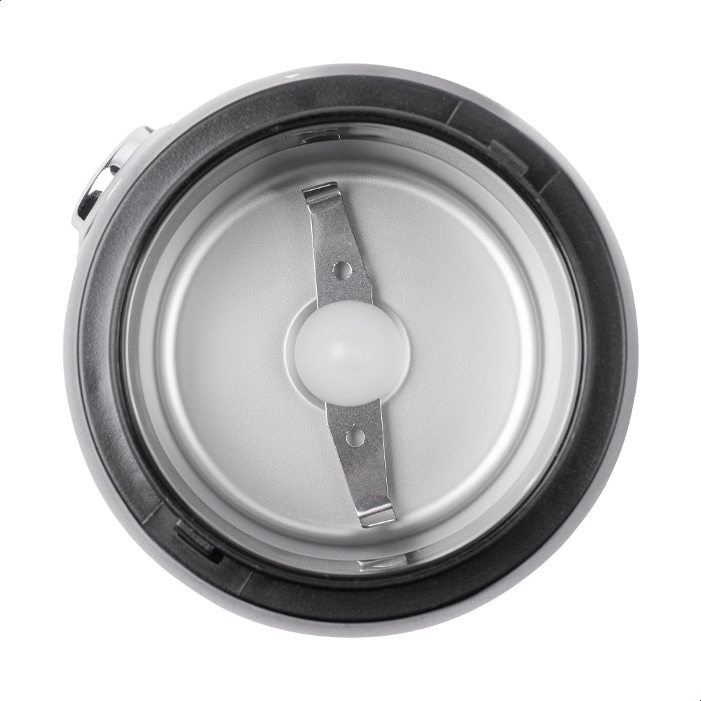 Su carcasa y tapa de acero inoxidable, junto con su sistema de bloqueo de seguridad, garantizan una máxima durabilidad y seguridad en su uso. Las cuchillas de acero inoxidable permiten una molienda uniforme y precisa, mientras que la tapa transparente te permite ver el proceso en tiempo real.