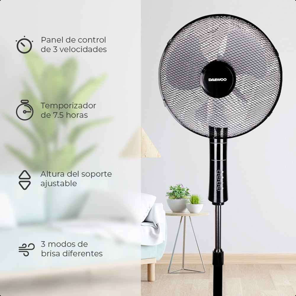 Disfruta de un confort total con nuestro ventilador de 16 pulgadas. Con control remoto y panel de control de 3 velocidades, personaliza tu experiencia de enfriamiento. Explora 3 modos de brisa distintos y programa tu comodidad con el temporizador de