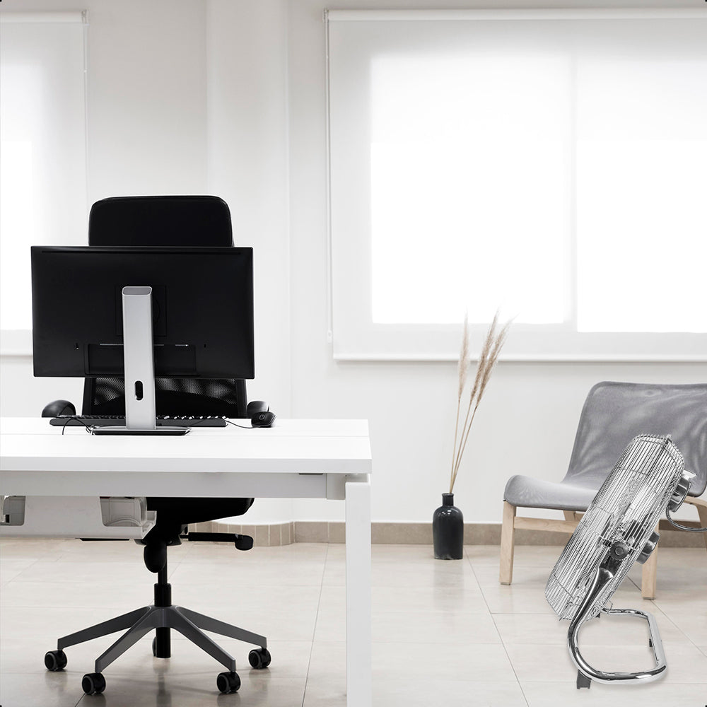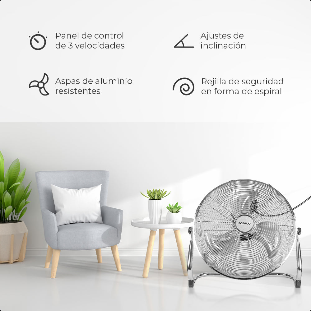 Sus aspas de aluminio resistentes y su rejilla de seguridad en forma de espiral garantizan un flujo de aire suave y seguro en toda la habitación. Además, su ajuste de inclinación te permite dirigir la frescura exactamente donde la necesitas.
